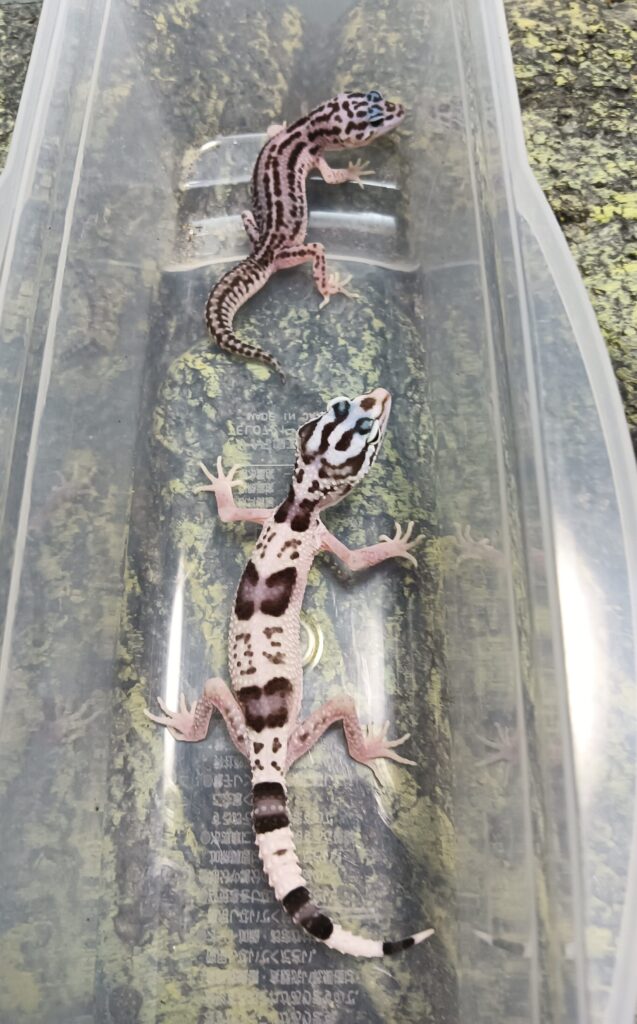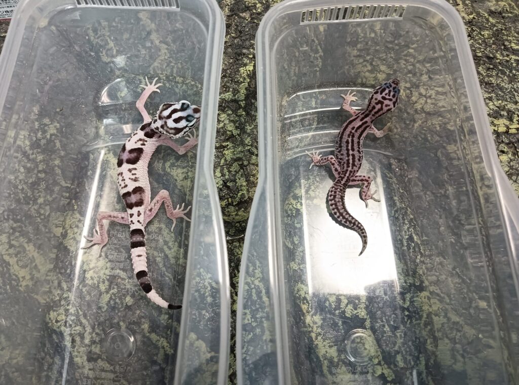 ベビーも同じく大きいです。10月に生まれたオバケトカゲモドキのベビーとその10日前に生まれたレオパベビーの大きさをくらべてみましょう。